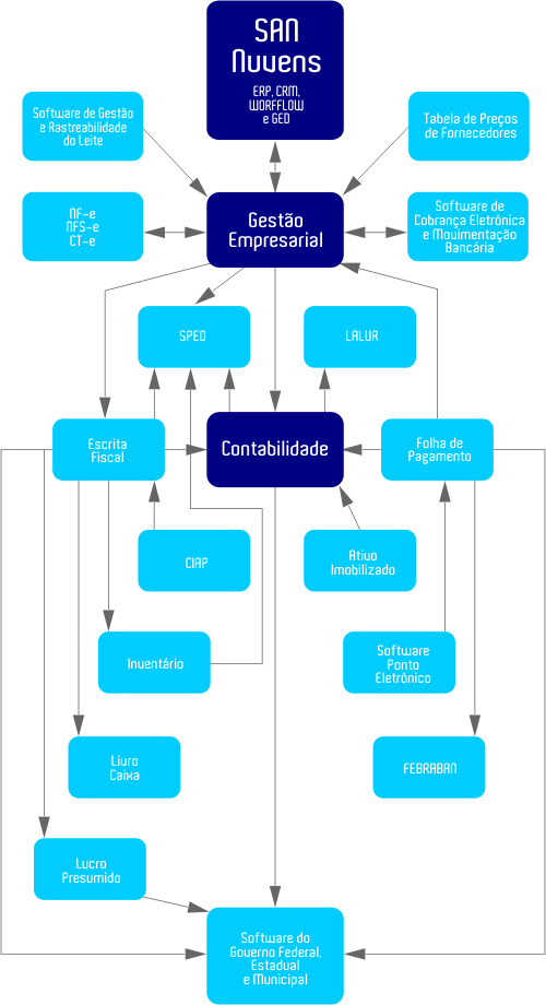 Para garantir maior eficiência nesses serviços, nós criamos o SAN – Gestão Contábil, com os módulos San RH, San Contabilidade, San Lalur, San Ativo Imobilizado e Depreciação, San Escrita Fiscal, San CIAP e San Lucro Presumido.